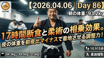 ダイエット 【2026.04.06|Day 86】17時間断食と柔術の相乗効果。夜の体重を前夜比マイナスで着地させる調整力