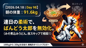 ダイエット 【2026.04.18|Day 98】2日連続の柔術!「ばんどう太郎」の誘惑を夜のスキップで見事に相殺。