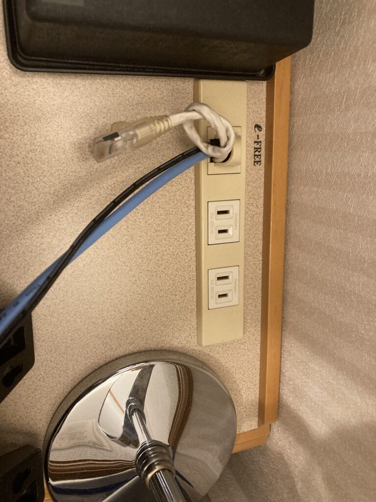 デスクにしっかりコンセントが確保されており、スマホやPCの充電もストレスなし。ブログを執筆する環境としても完璧です。