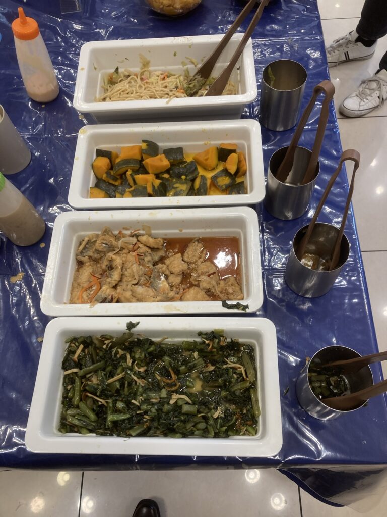 • 野菜多め: サラダとお浸しで皿を埋める。
