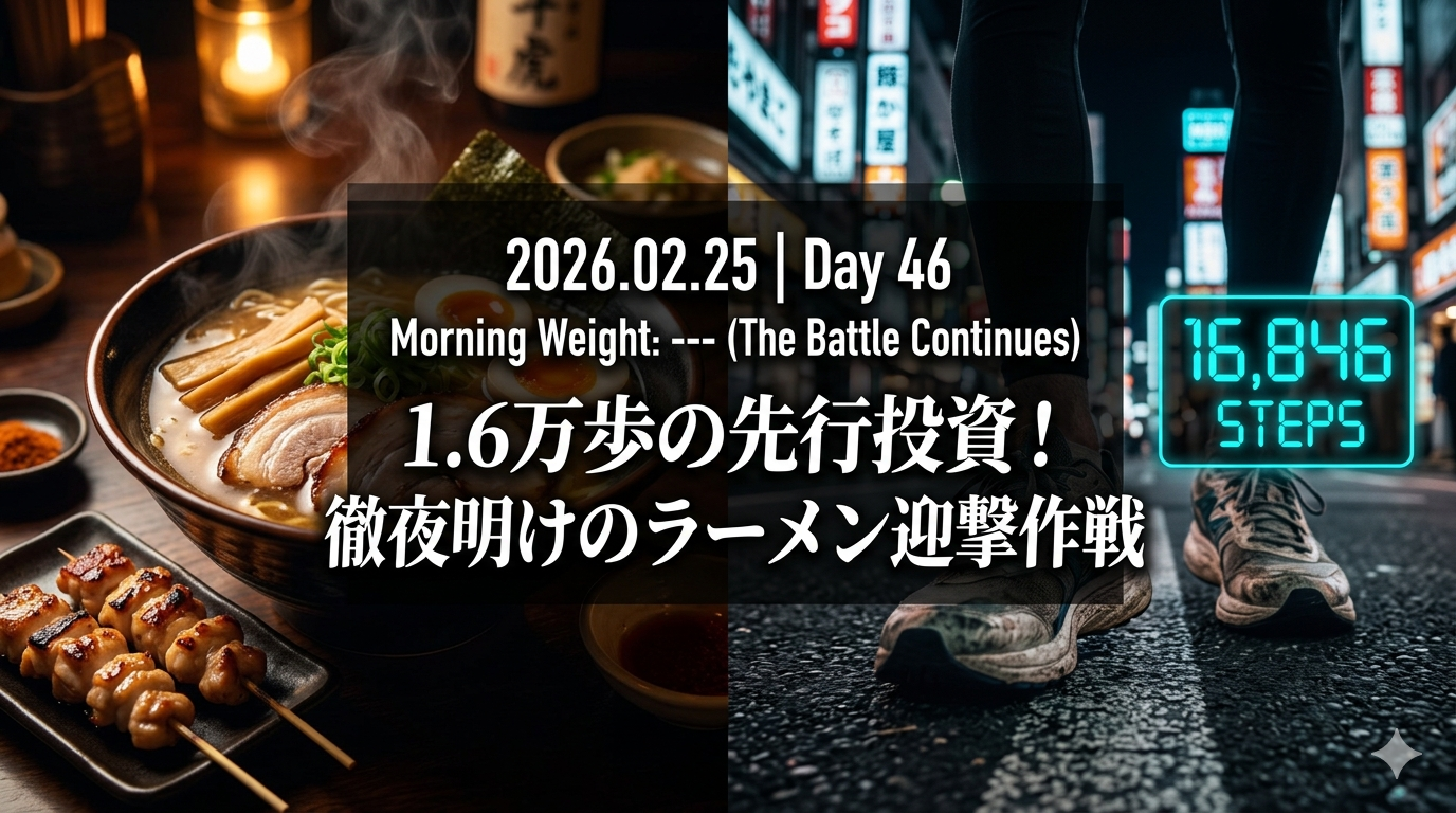 徹夜明けに1.6万歩以上歩くという身体能力が、この日のすべてを支えています。夜のラーメンは確かに数値に影響しますが、日中の「高タンパク・低糖質」な繋ぎ食と、驚異的な歩数による代謝ブーストによって、ダメージは最小限に抑えられているはず。この「動いたから食べる」というシンプルな規律が、モチベーション維持の鍵となります。