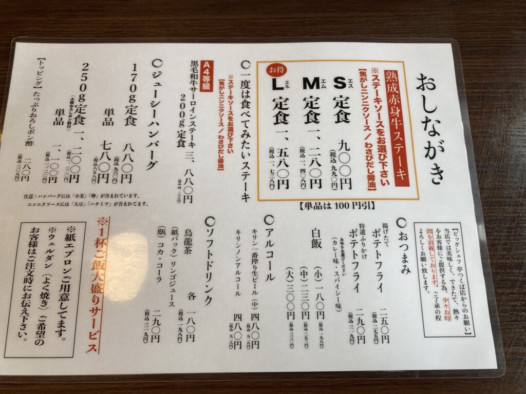 安い!美味い!ボリューム満点!ステーキ&ハンバーグのビッグシェフ亭