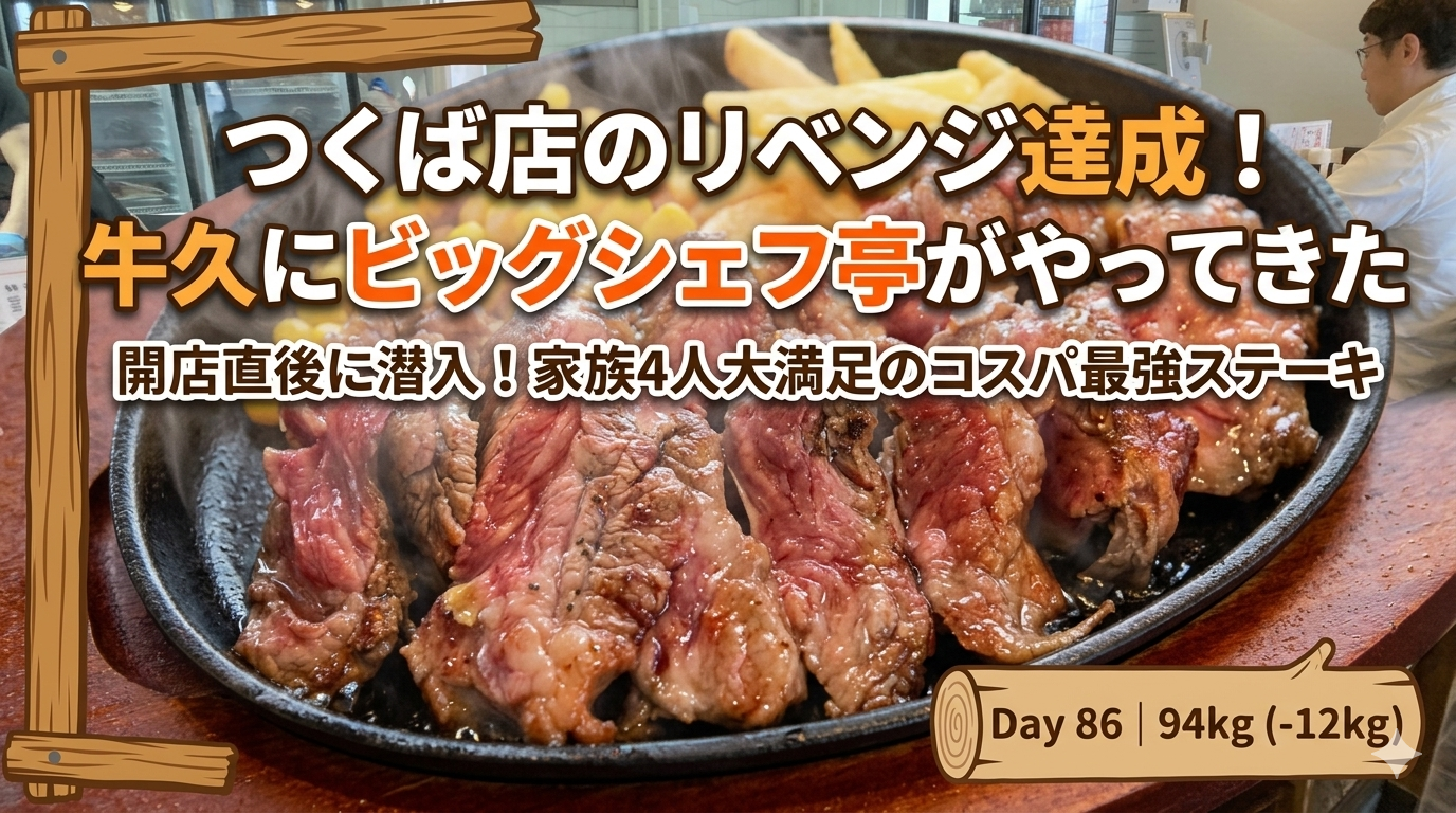 【牛久】コスパの神降臨!「ビッグシェフ亭」オープン。家族4人でステーキをガッツリ堪能してきた