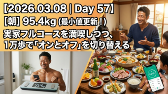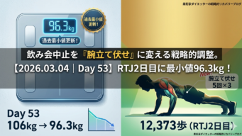 ダイエット 【2026.03.04|Day 53】RTJ2日目に最小値96.3kg!飲み会中止を「腕立て伏せ」の機会に変える。