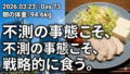 • [昼] 豆腐、納豆2パック、キムチ、ワカメ、温玉、うどん