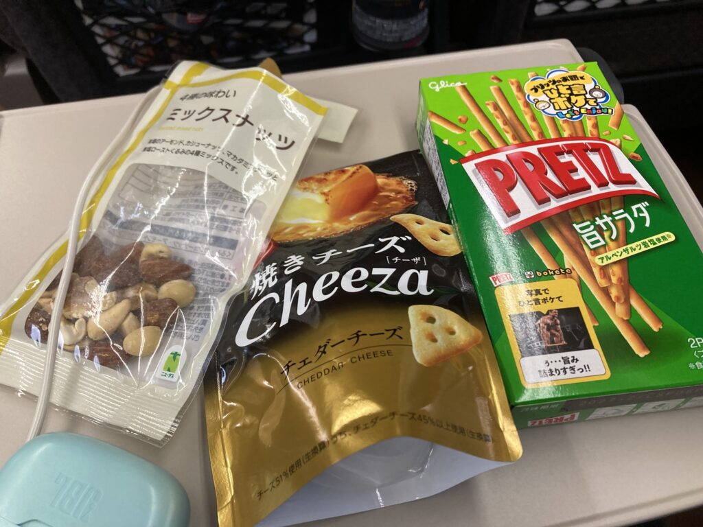 • [間食] ミックスナッツ、チーザ、プリッツ(福井への移動車中)