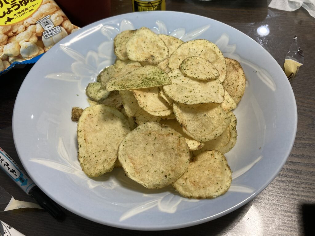 朝・昼は蒸し鶏と豆腐、海藻を中心とした「完璧なリセット食」を徹底。おやつのポテチ(のり塩)でストレスを逃がしつつ、夜を抜くことで1日の総摂取エネルギーを最小限に抑え込みました。