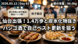 大阪出張から一夜明け、体内に残る塩分やアルコールの影響と戦う1日。帰宅途中の間食により夜の数値は微増しましたが、筋トレ習慣を崩さず継続することで、翌日へのリセットに繋げました。