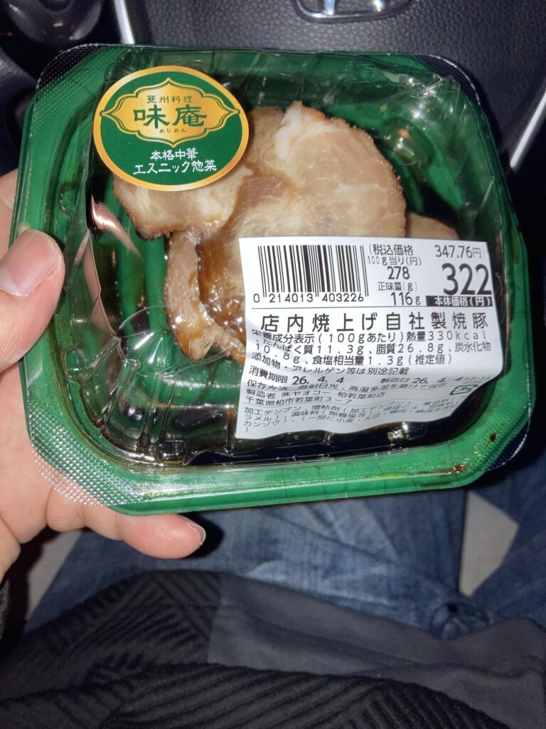 昼に食べたビッグシェフ亭のステーキは、とにかく美味かったです!練習前の最高のエネルギー補給になりました。夜はヤオコーのチャーシュー(100gあたりタンパク質11.3g)のみに絞り、糖質を徹底的に排除することで、翌朝の脂肪燃焼効率を意識した構成にしています。