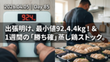 「食べたものは、定着する前に出す」。今日の調整を信じ、明日は再び95kg台での安定を目指して、着実に歩みを進めます!