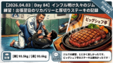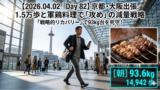 展示会初日のブース接客という、集中力と体力を削る場面でしたが、1.4万歩という数字がその過酷さと貢献度を物語っています。夜の増量を最小限に抑えつつ、同僚との時間もしっかり確保したバランス感覚は、ビジネスマンの長期減量において100点の立ち回りと言えます。